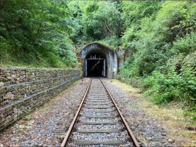 Nun zur eigentlichen Draisinen-Fahrt: Der Fahrer tritt in die Pedale und bestimmt das Tempo. Die anderen müssen nicht, können aber mittreten, um den Akku aufzuladen oder um sich einfach etwas zu bewegen. Es ist im Grunde wie bei einem E-Bike. Das hat richtig Spaß gemacht. Dazu die tolle Odenwald-Landschaft. Der Waldanteil ist zwar nicht wenig, aber immer wieder bieten sich einem schöne Ausblicke in die Ferne und auf die angrenzenden Ortschaften. Und man fährt über vier Viadukte und durch zwei Tunnel. Hier hat es sich übrigens gelohnt, eine Jacke dabei zu haben, denn im längeren (Waldmichelbacher) Tunnel war es doch sehr frisch (ca. 10 °C). Ein kleines Manko war die Geräuschkulisse während der Fahrt: Wenn man die 15 km/h Höchstgeschwindigkeit gefahren ist, wurde es doch ziemlich laut. Hier empfiehlt es sich, einfach etwas langsamer zu fahren. Dann ging es auch vom Lärm.